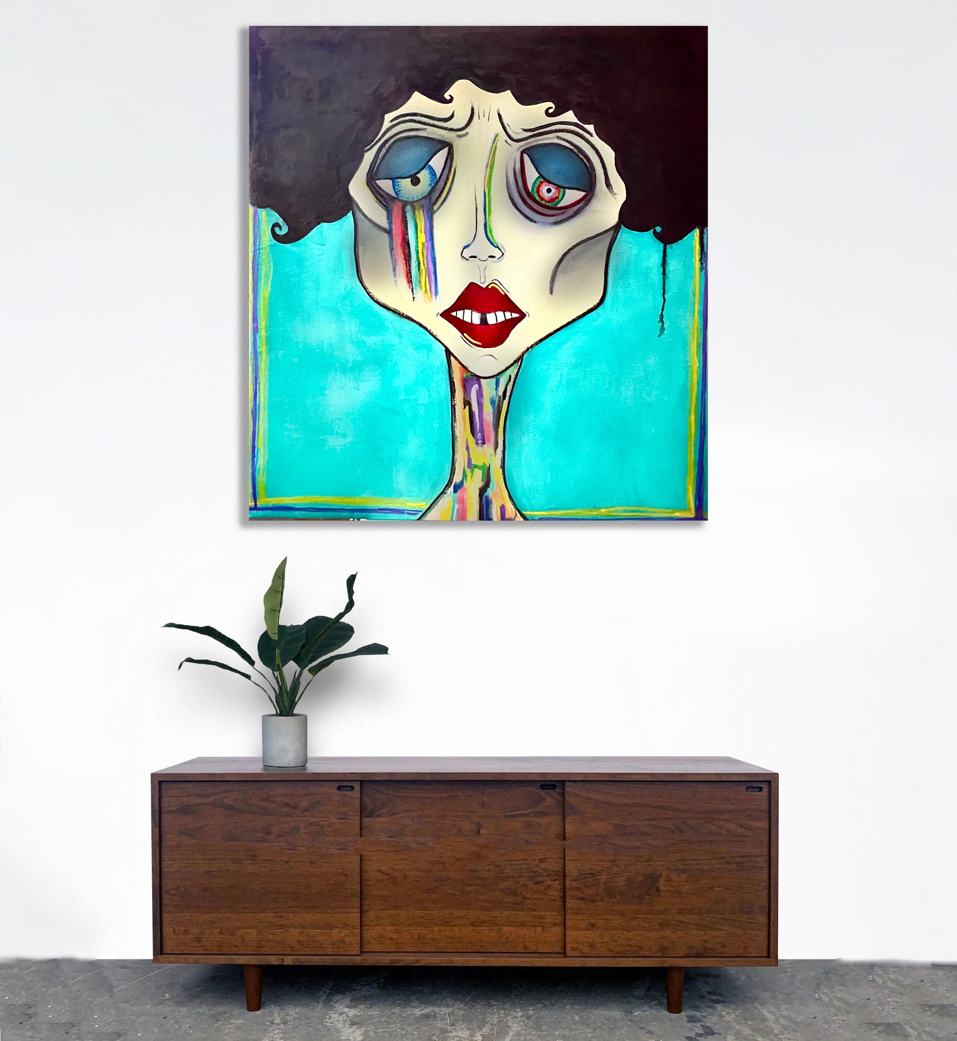 Oil paint, cold wax & paint marker on canvas