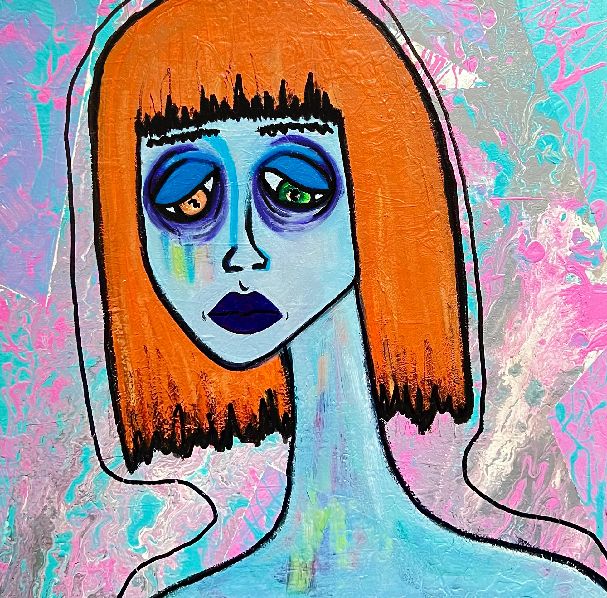 Oil paint, acrylic paint & paint marker on canvas